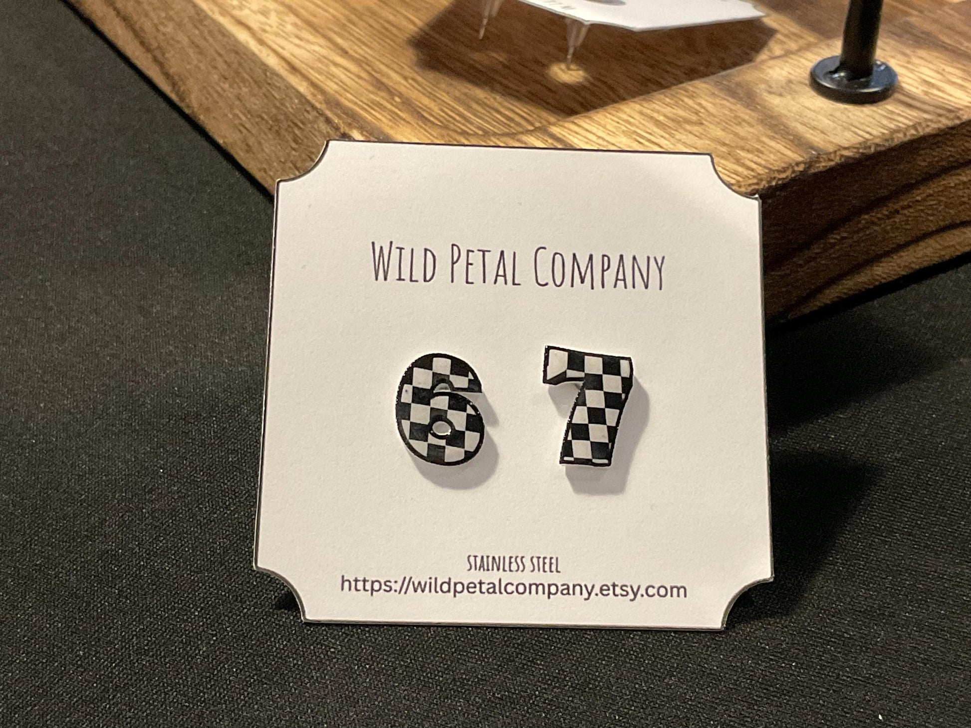 6 7 black and white earrings, six seven Earrings, checkers earrings.