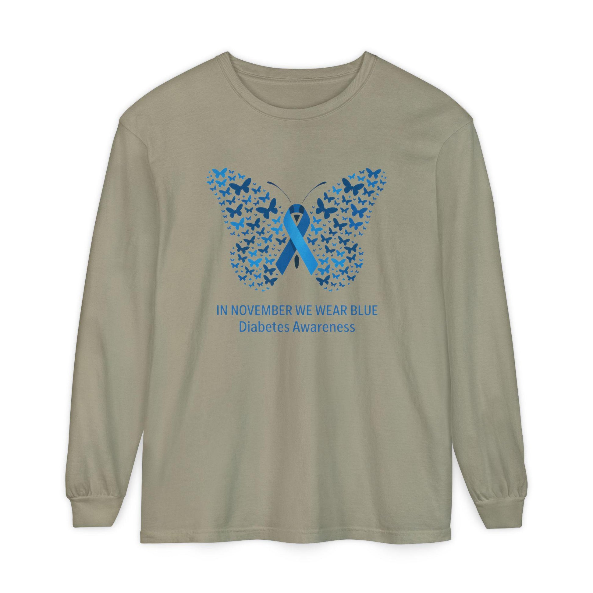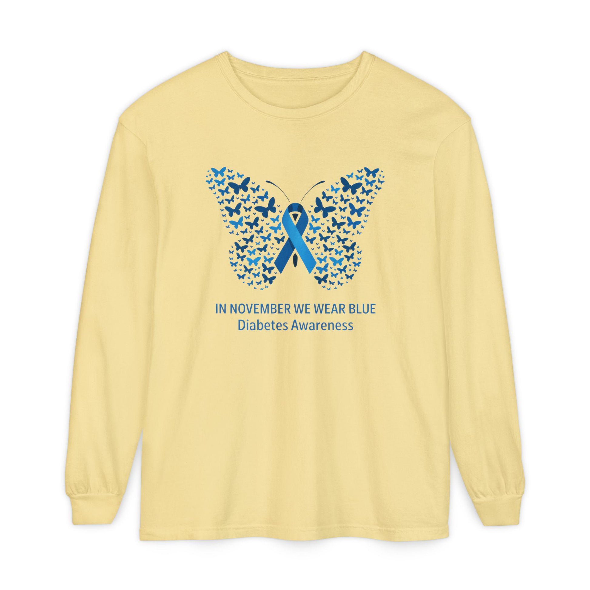 Embrace comfort and awareness with this unisex garment-dyed long sleeve t-shirt. Featuring a beautiful butterfly design symbolizing Diabetes Awareness, it’s perfect for layering during chilly months. This shirt offers a relaxed fit, making it an ideal choice for casual outings or cozy nights in. It radiates a warm, supportive vibe, encouraging conversations around vital health issues. Designed for adults, it's a thoughtful gift for advocates, friends, or family members active in supporting health causes. Perfect for Diabetes Awareness Month, community events, or simply showing support year-round. This shirt truly bridges style and purpose.