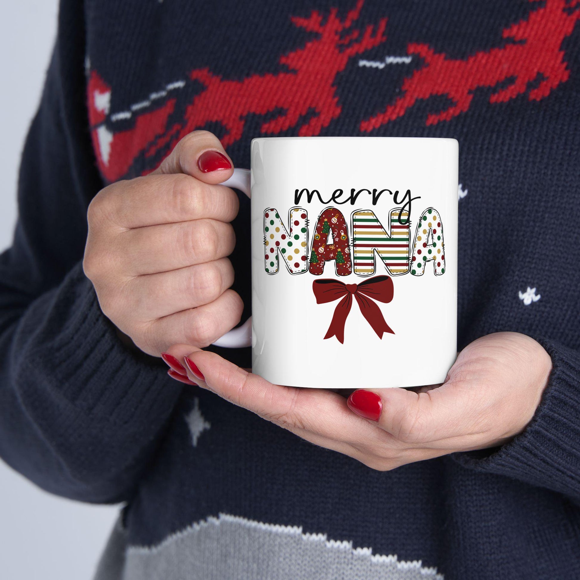 Ceramic Mug, Merry Nana Coffee Cup, Holiday Gift for Grandmother, Cute Grandparent Mug, Personalized Nana Mug, Christmas Gift Idea