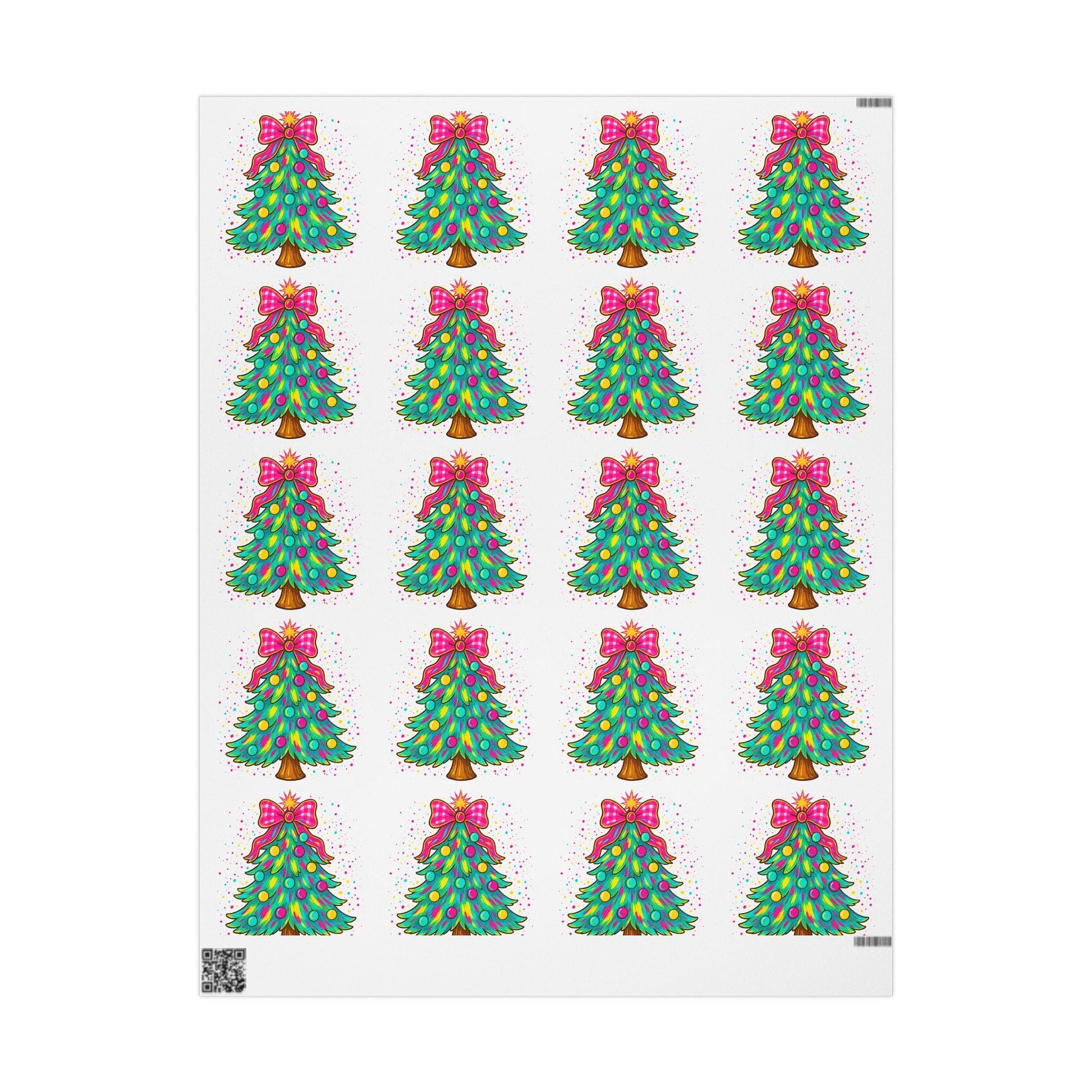 Christmas Wrapping Paper Roll - Colorful Tree and Bow Designs, Holiday Gift Wrap, Festive Paper, Unique Christmas Decor