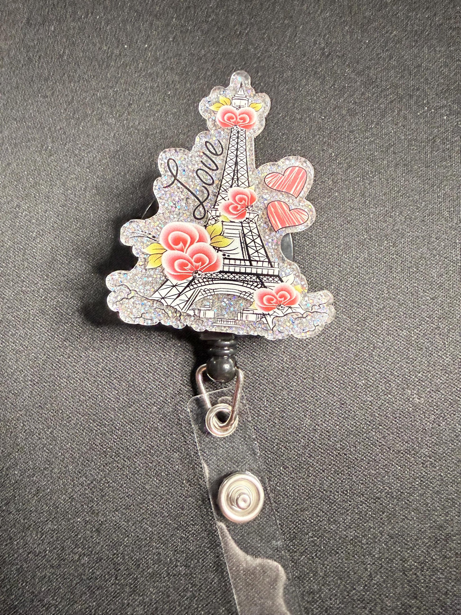 Fall in love with your badge reel! This dreamy design features a glittery Eiffel Tower surrounded by pink and yellow roses, striped hearts, and the word “Love” in elegant cursive. Perfect for nurses, teachers, and anyone who adores Parisian charm, this retractable ID holder adds a touch of romance and sparkle to your everyday routine. Whether you’re gifting a coworker or treating yourself, this reel is a chic way to wear your heart on your badge.