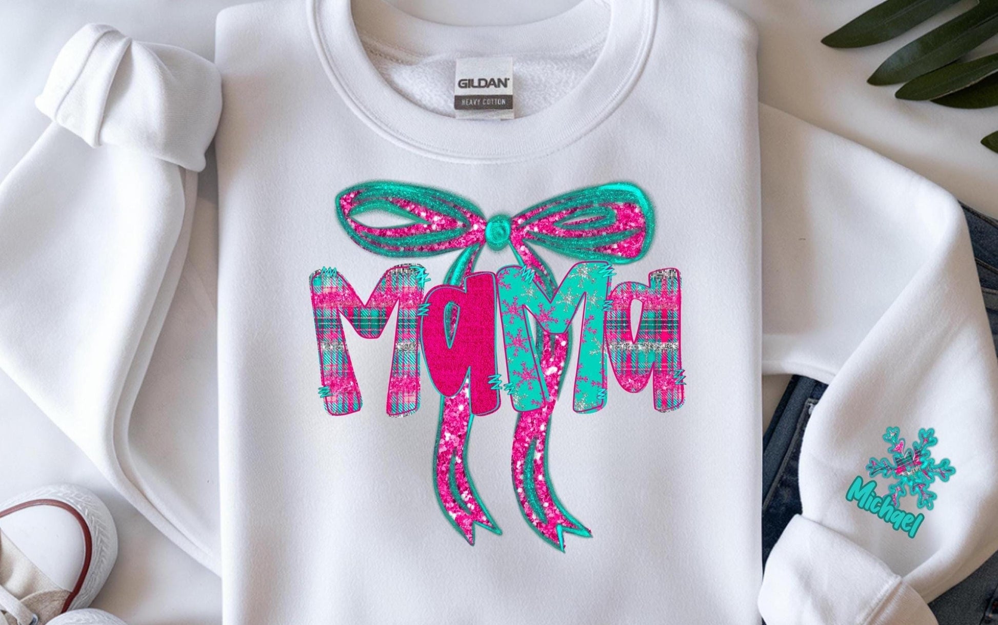 Custom Bow Sweatshirt for Moms, Cozy Crewneck, Mother's Day Gift, Birthday Present, Casual Wear