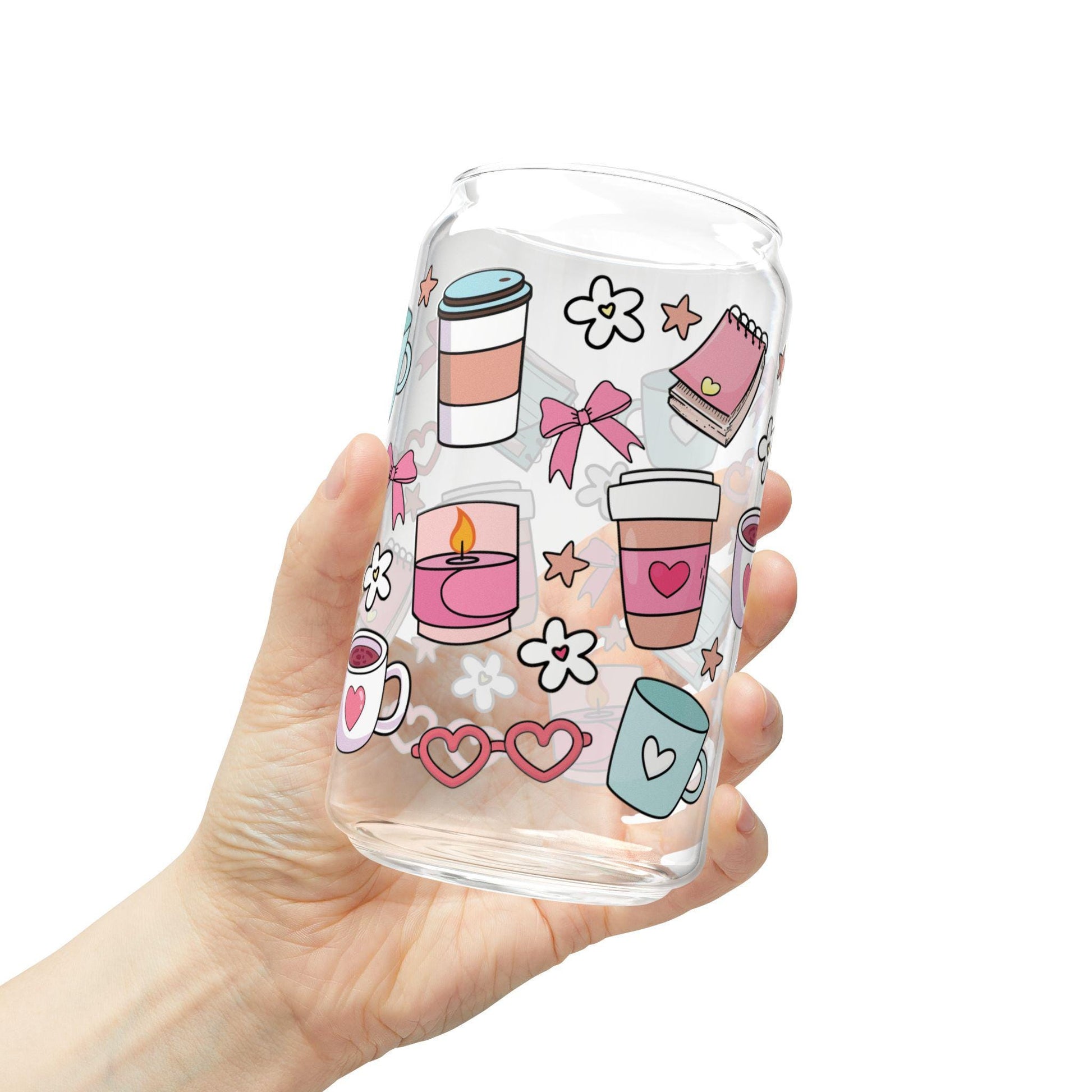 Cute Coffee and Sipper Glass, 16oz - Fun Drinkware, Stylish Straw Glass, Gift for Coffee Lovers, Cute Kitchen Decor, Valentine's Day Gifts