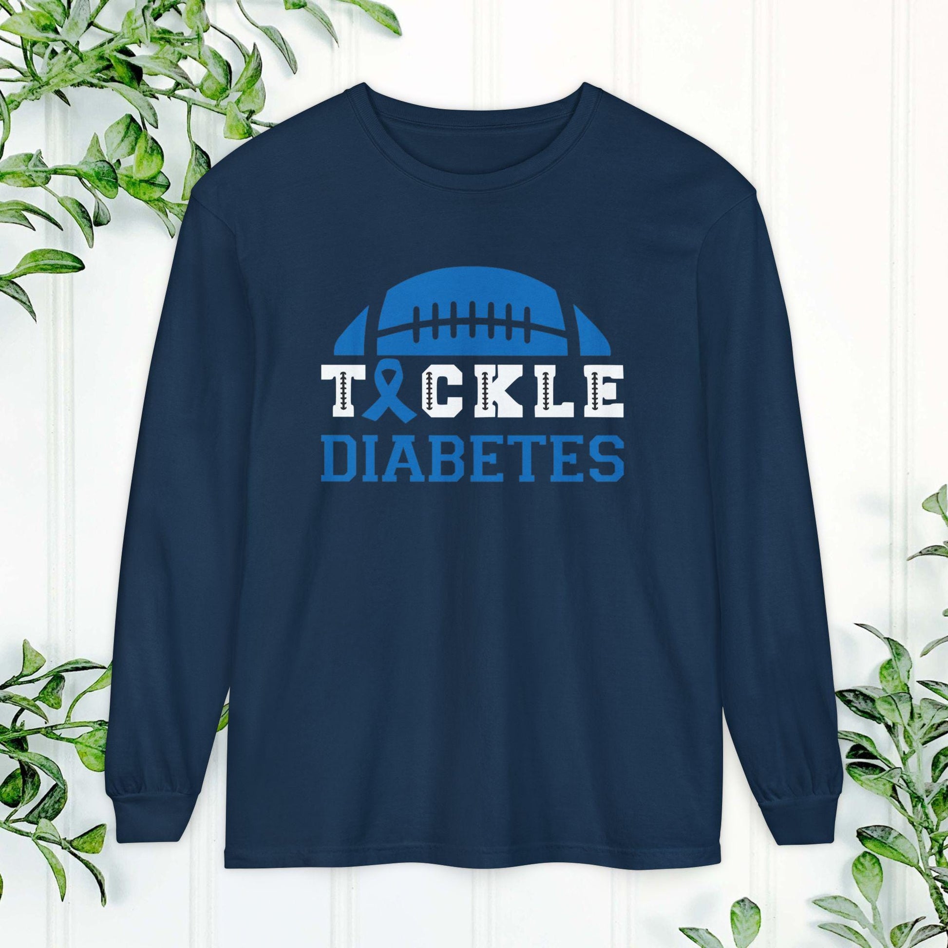 Introducing our cozy Unisex Long Sleeve T-Shirt, designed to make a statement. With its vibrant garment-dyed fabric, this shirt not only feels soft against your skin but also adds a splash of color to your wardrobe. Perfect for layering during cooler months or wearing on its own, it brings a casual yet stylish vibe to any outfit. Ideal for those who want to support diabetes awareness or show team spirit during football games. Whether you're lounging at home or out with friends, this t-shirt adds comfort and personality to your day. Great for gifts on occasions like National Diabetes Awareness Month, birthdays, or any casual gathering!