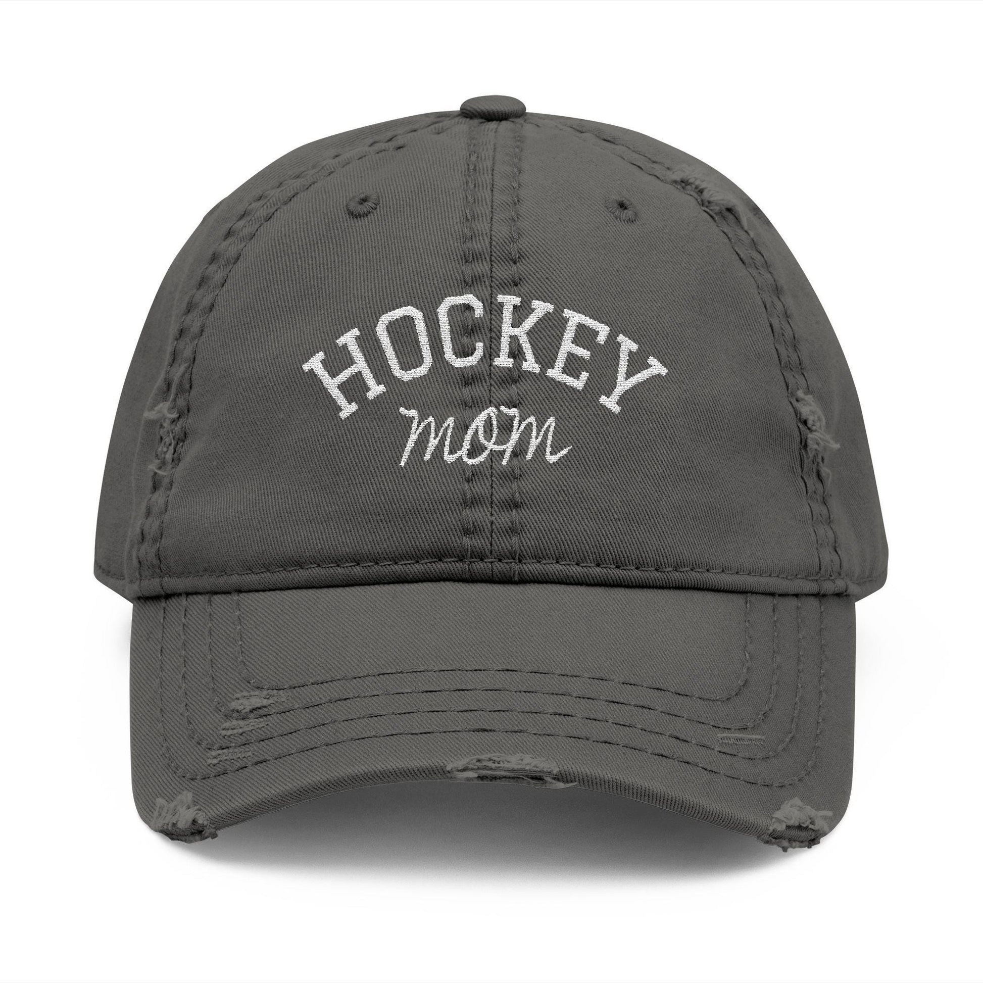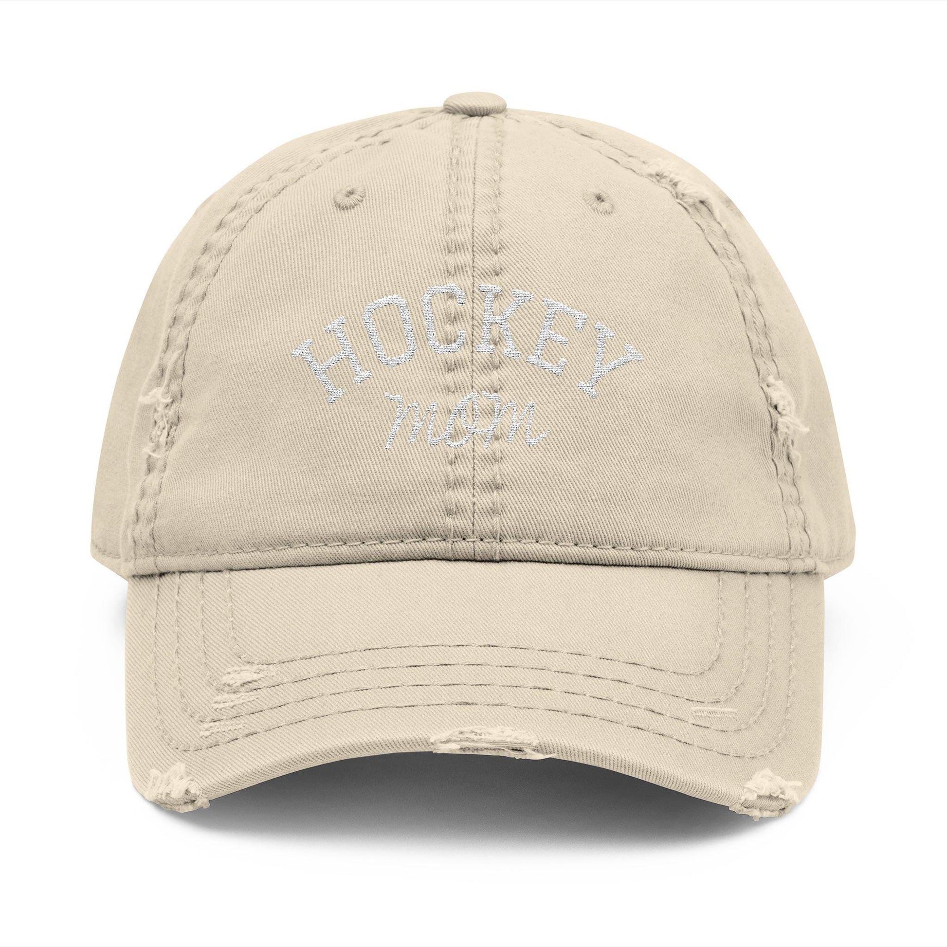 Distressed Embroidered Hockey Mom Hat: Vintage-Style Sports Cap