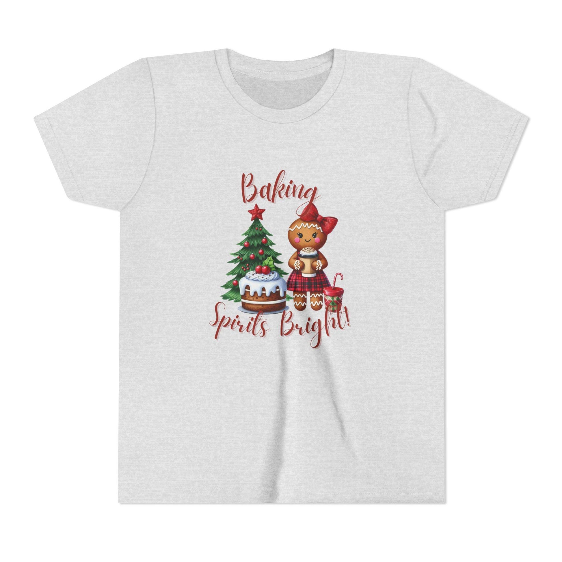 Festive Baking Tee, Christmas T-Shirt, Youth Holiday Apparel, Gifts for Kids, Cute Christmas Shirt, Baking Spirits Bright Tee