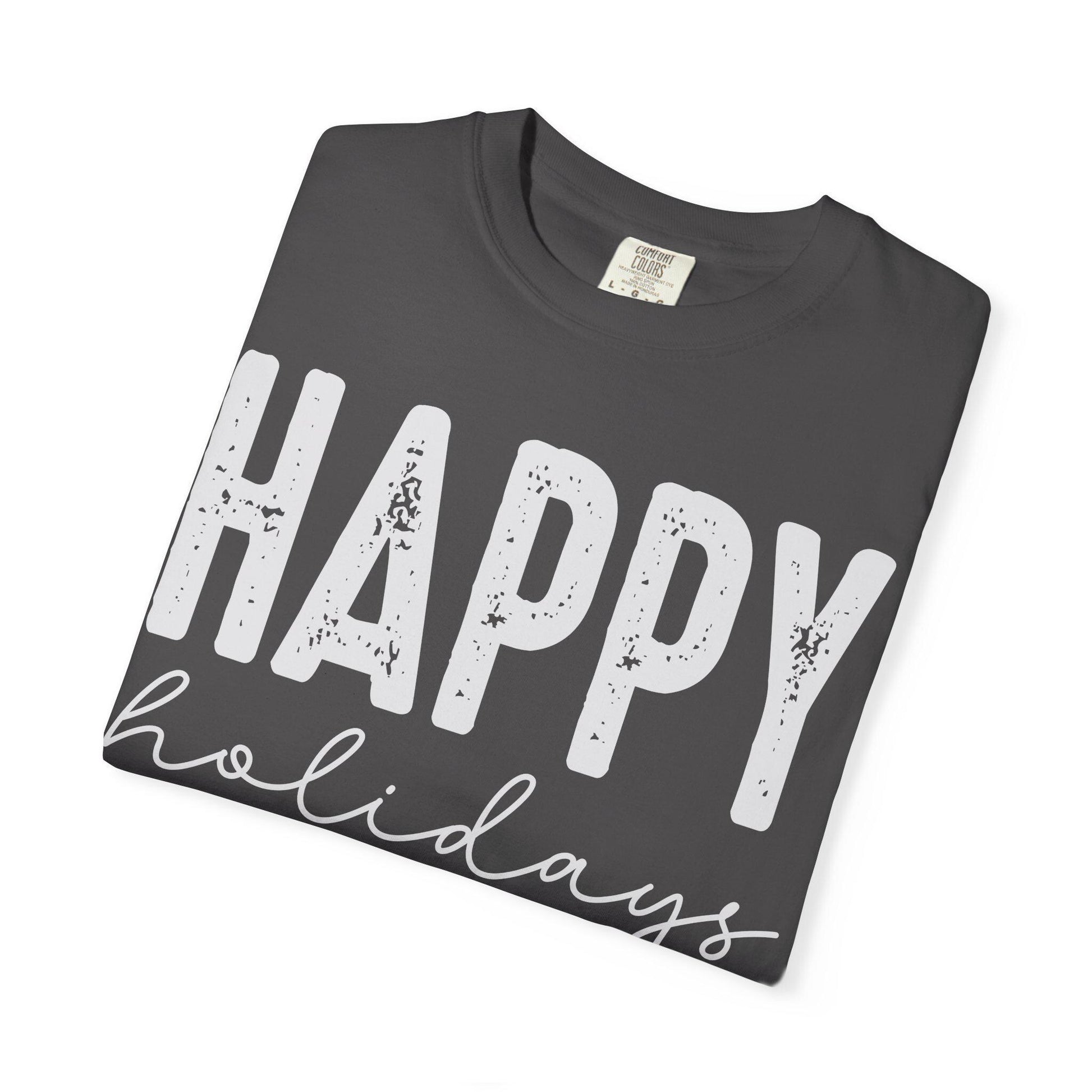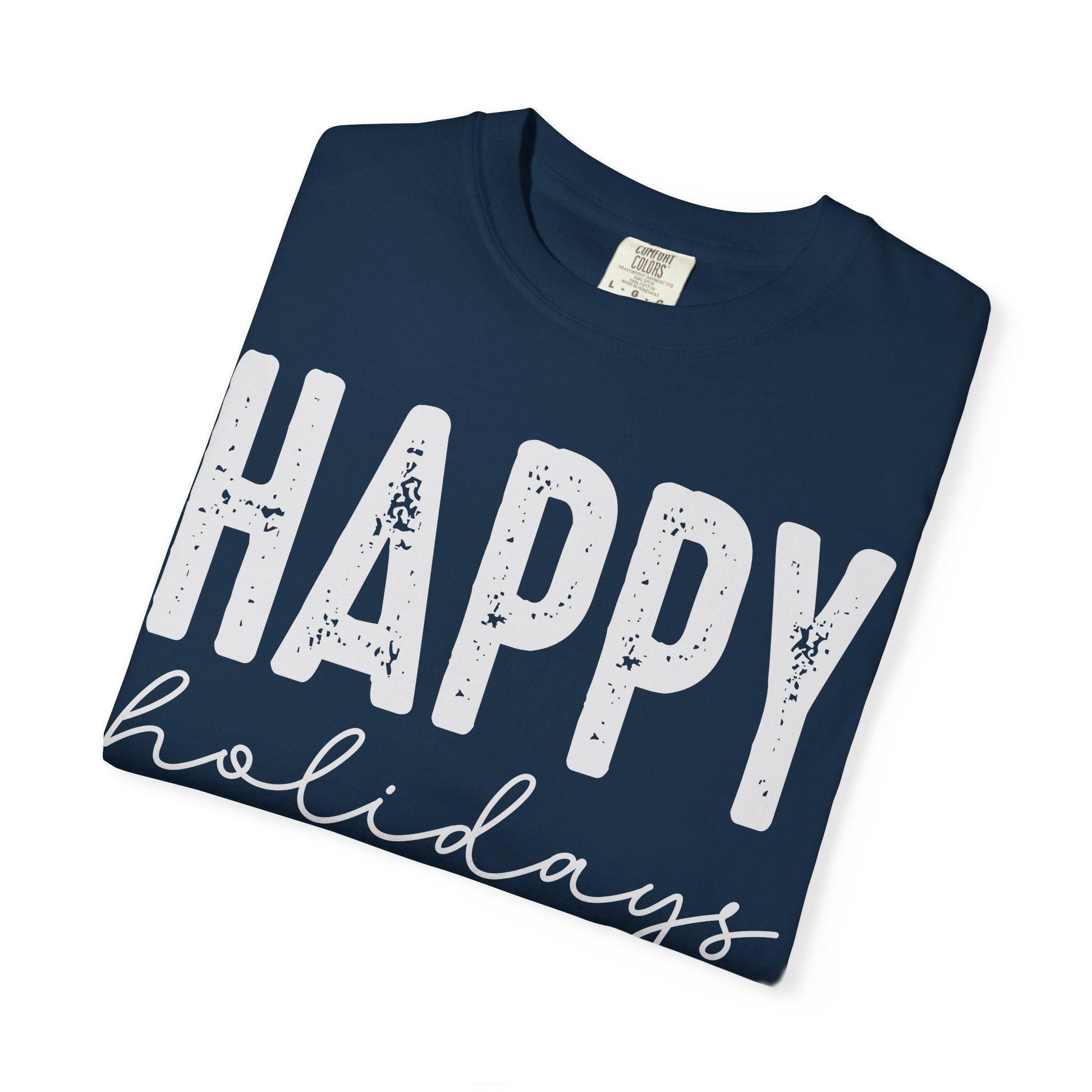 Happy Holidays Unisex Garment-Dyed T-Shirt, Casual Birthday Tee, Fun Gift for Him/Her, Celebration Apparel, Comfortable Everyday Wear