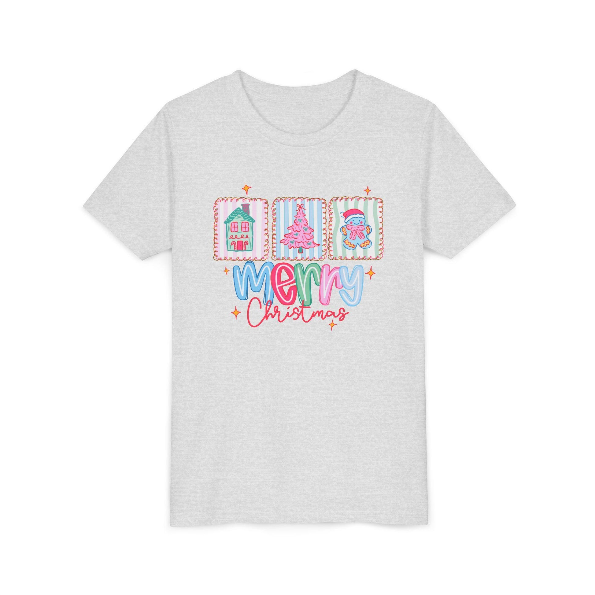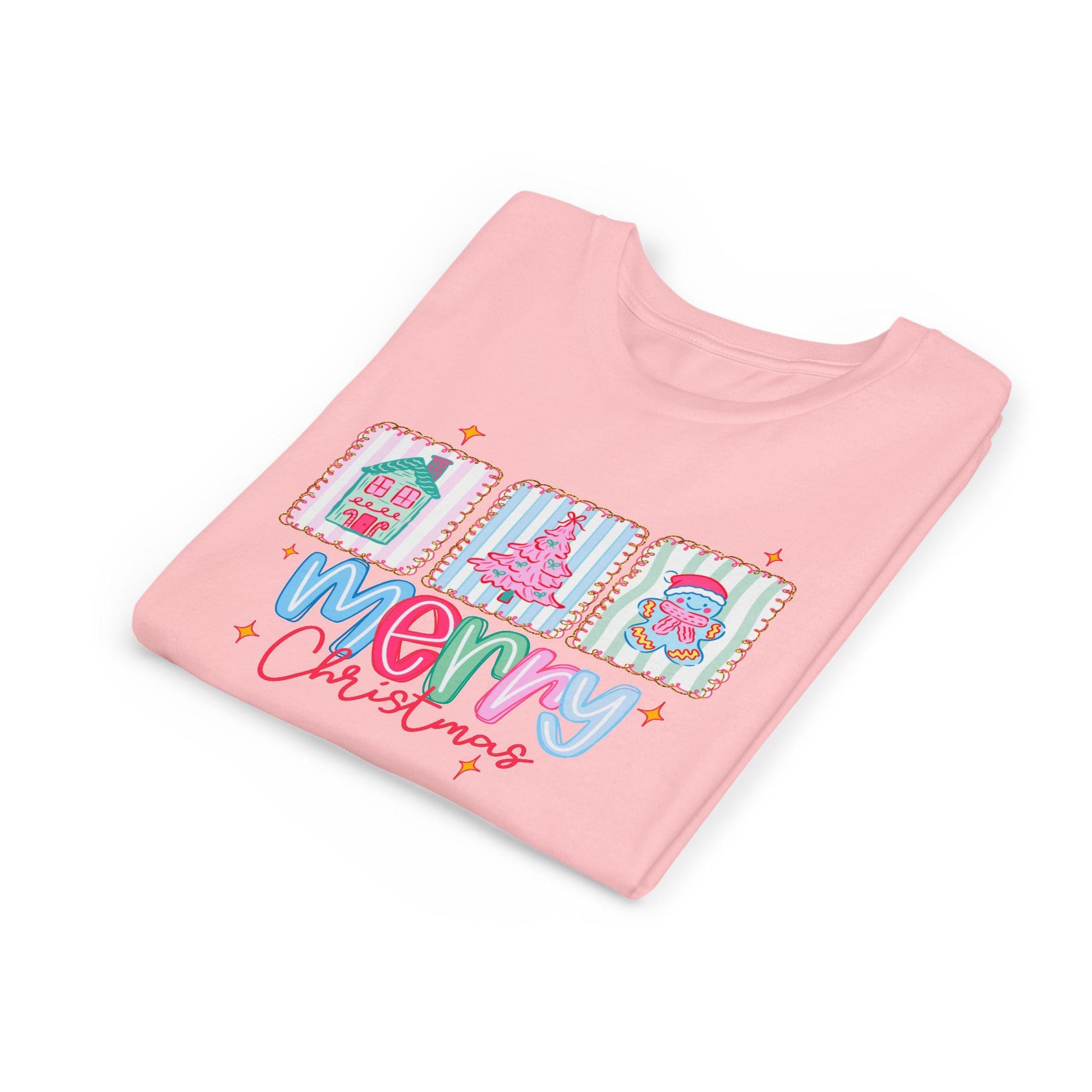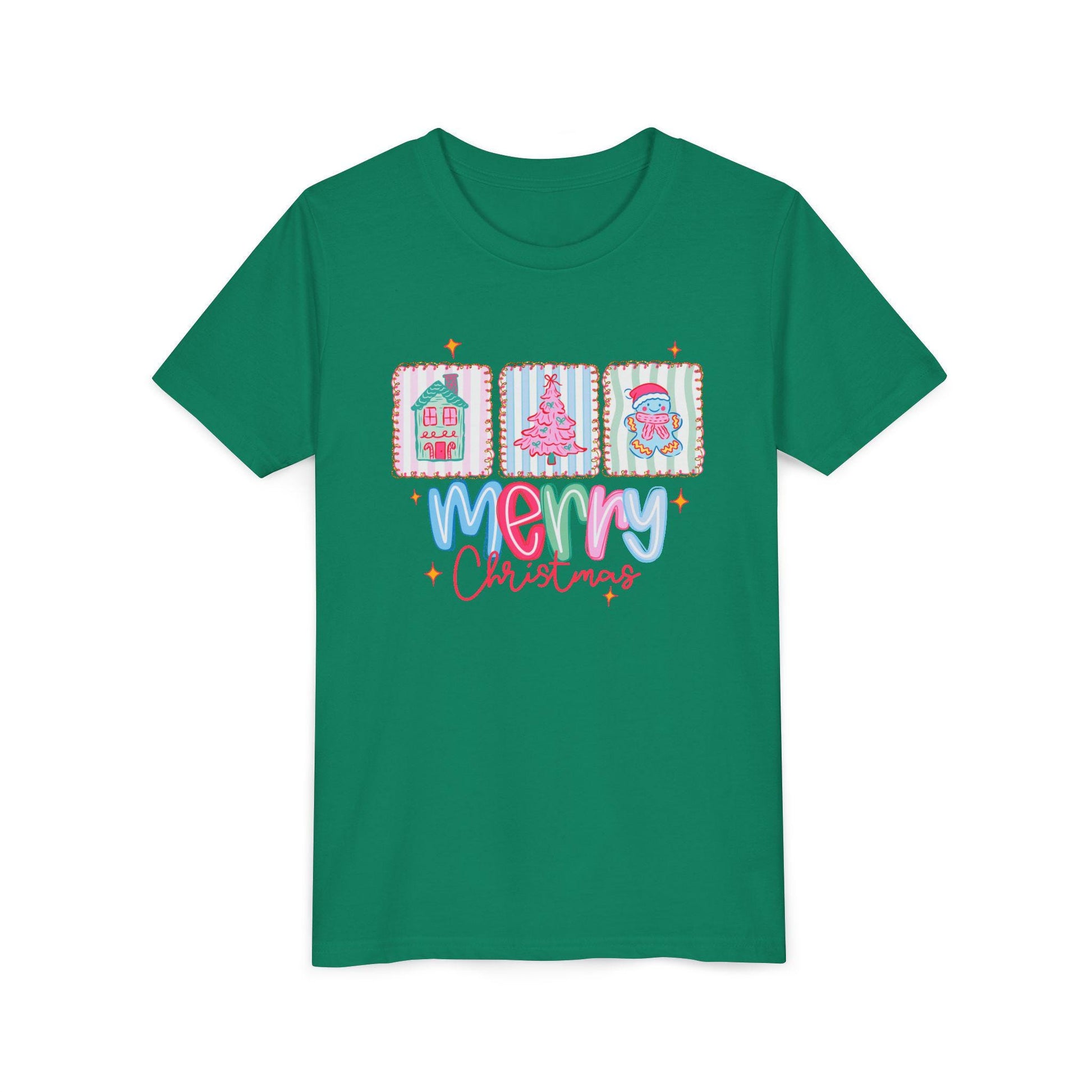 Merry Christmas Youth Tee, Holiday Shirt for Kids, Cute Christmas Apparel, Gifts for Children, Kids Short Sleeve Christmas Tee