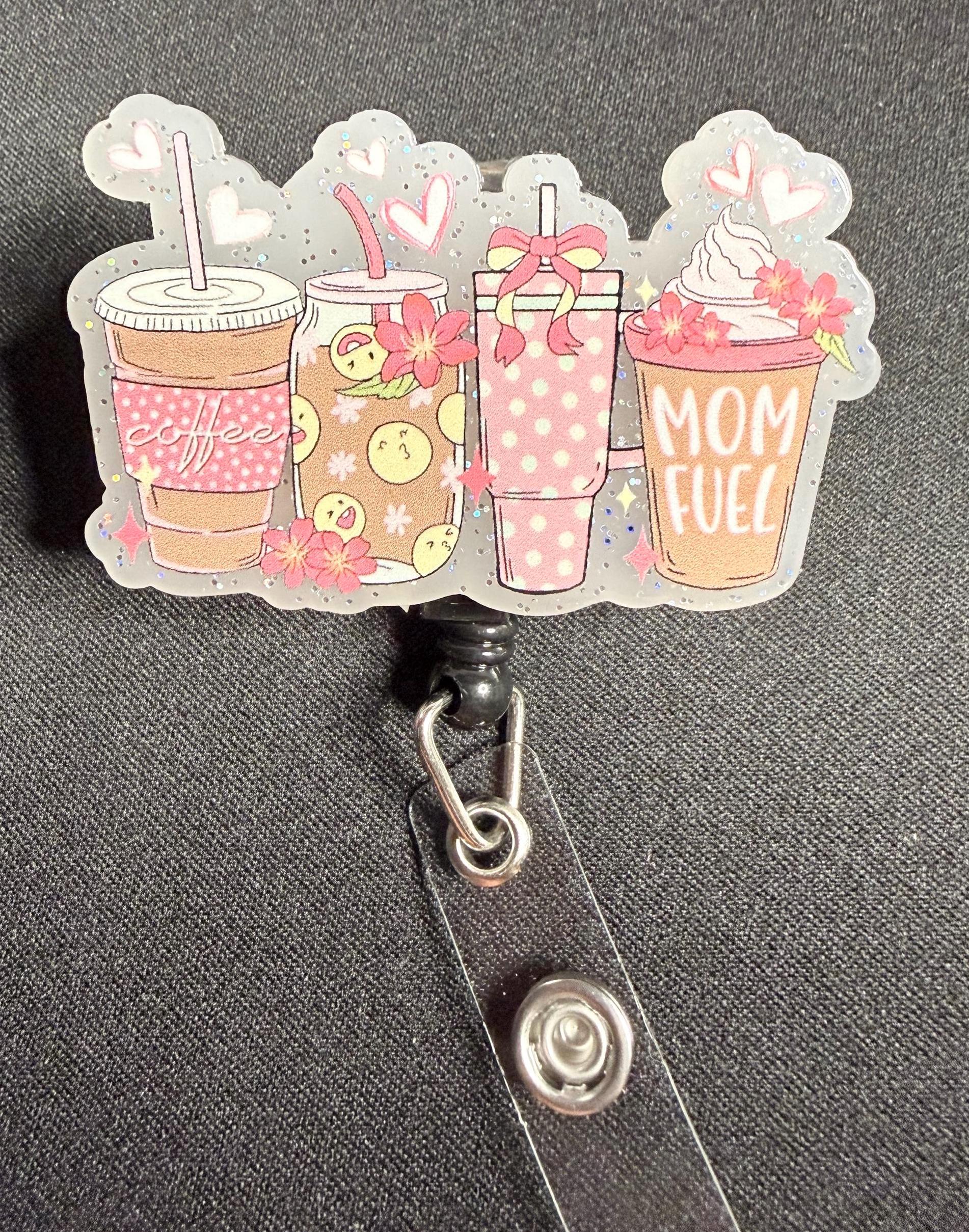 Fuel your day with flair! This playful badge reel features five vibrant drink cups adorned with hearts, flowers, bows, and one proudly labeled “MOM FUEL.” Perfect for multitasking mamas, nurses, teachers, and anyone who wears their badge with style, this retractable reel adds a splash of fun and caffeine-loving charm to your workday. A great gift for Mother’s Day, coworker appreciation, or just because—you deserve it!