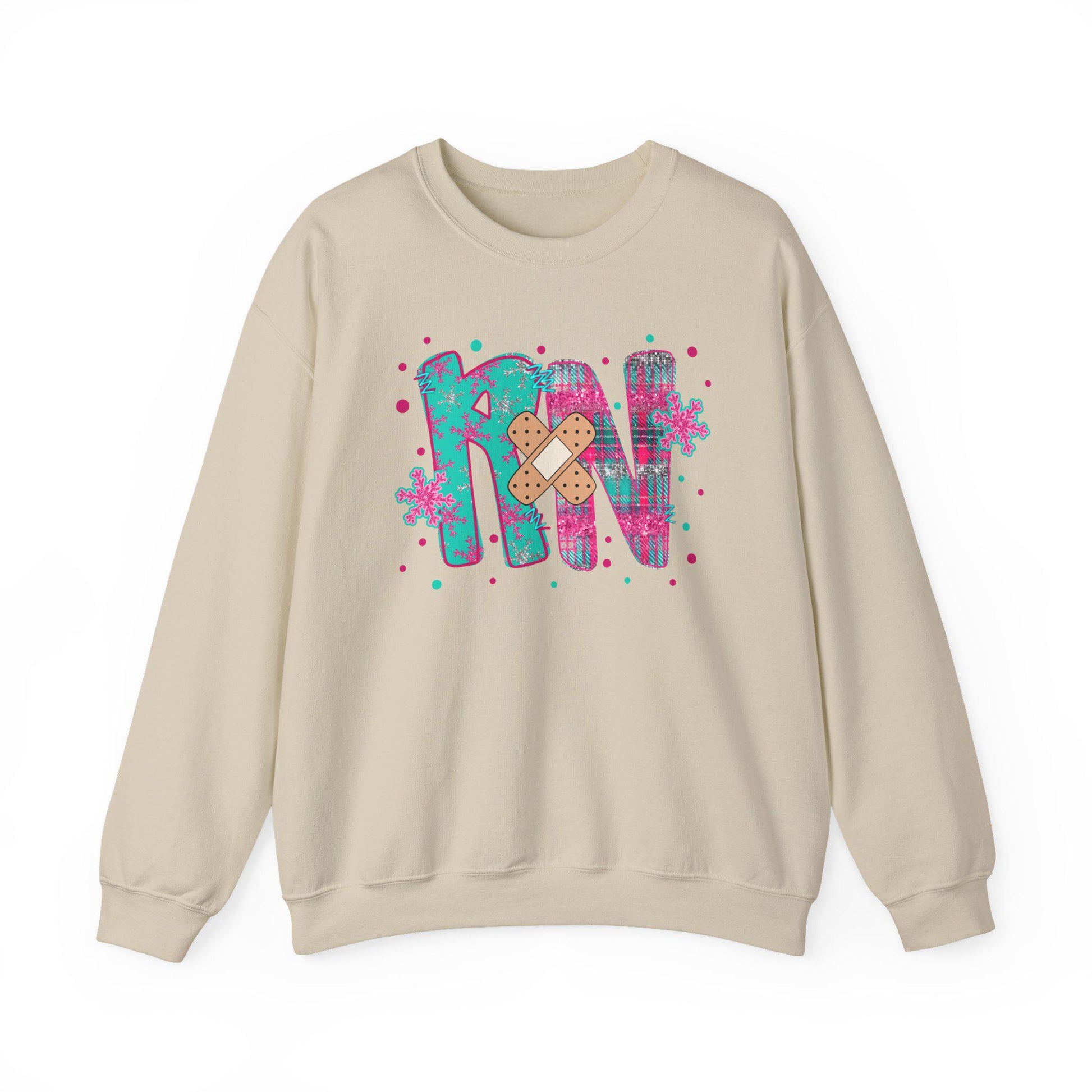 RN with a Bandage, snowflake sweater, Nurse crewneck sweatshirt, colorful bandage graphic, medical theme, Nurse Gift, Holiday Nurse Gift