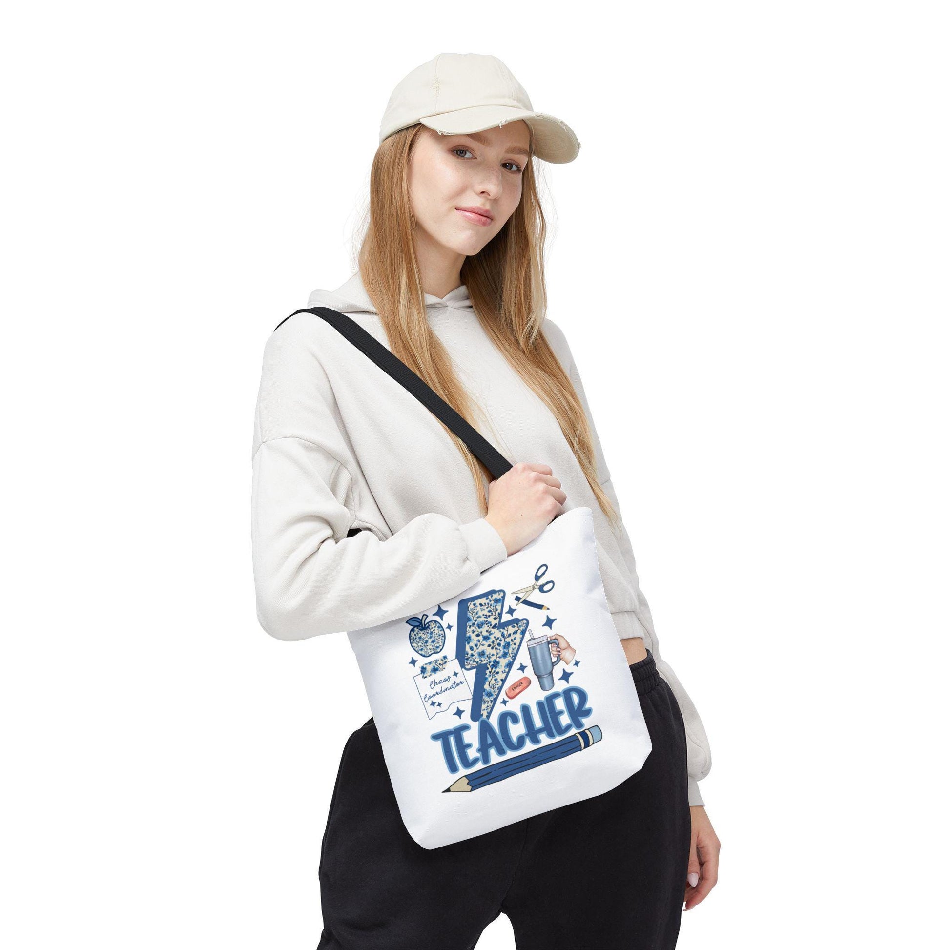 Introducing a stylish and functional Tote Bag, perfect for teachers or anyone who values practicality with a splash of personality. This bag effortlessly blends durability with flair, making it an ideal companion for daily commutes, classroom needs, or casual outings. With its charming design, it brings an uplifting vibe to your routine, encouraging creativity and organization. Perfect for back-to-school season, Teacher Appreciation Week, or as a thoughtful gift for any educator. This tote bag is not just a carrier; it's a statement piece for those who inspire and educate others.