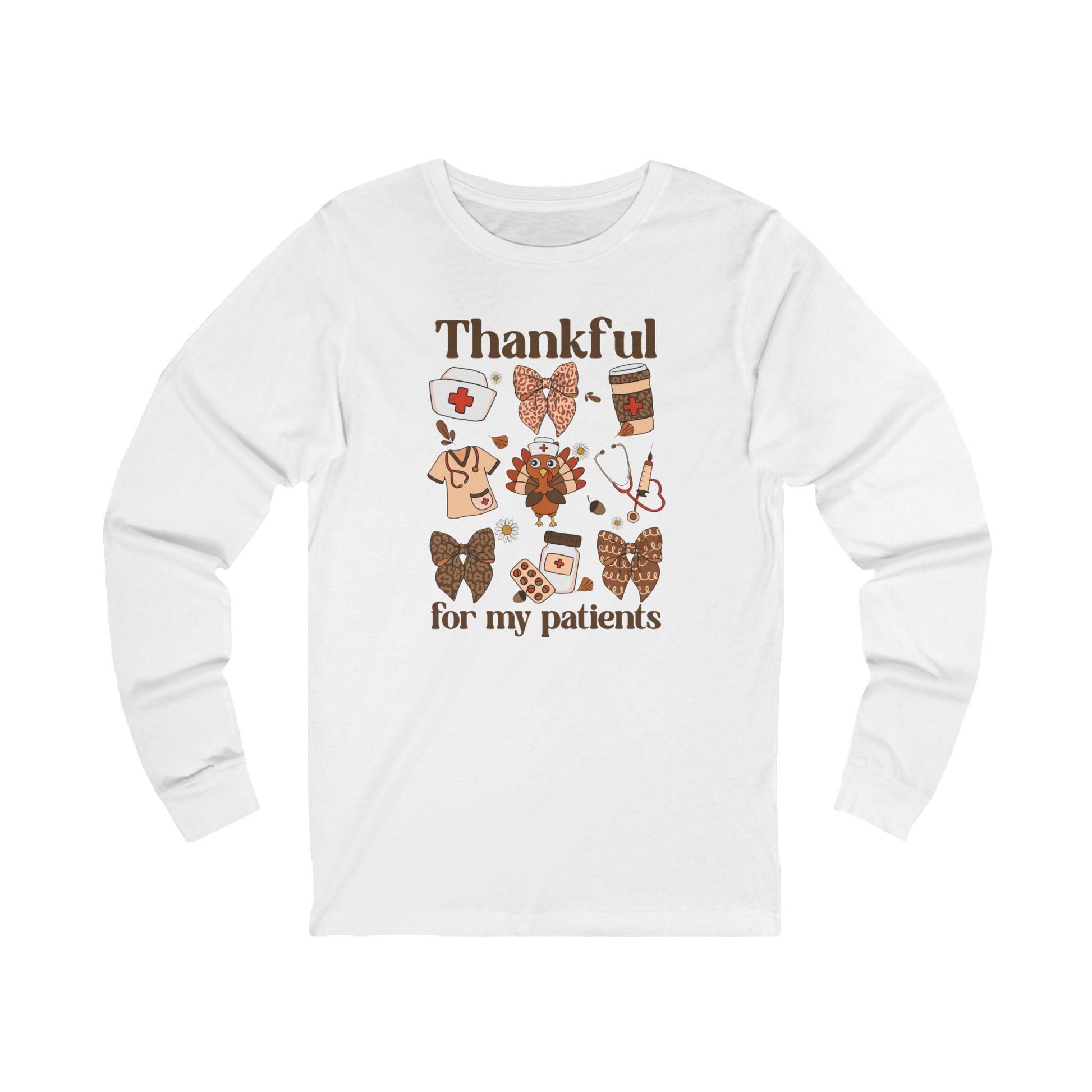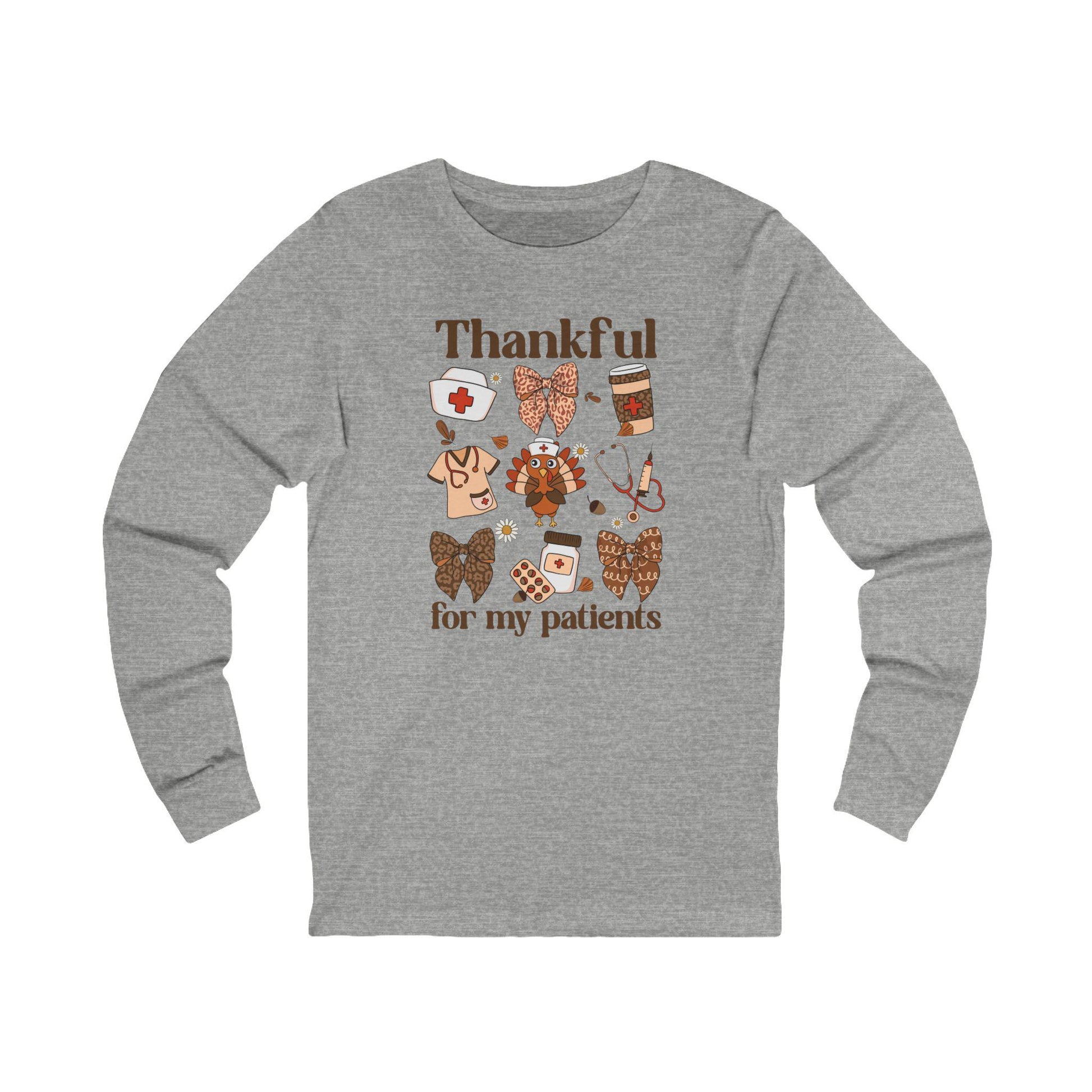 Thankful for My Patients Long Sleeve Tee, Gratitude Shirt, Caregiver Gift, Nurse Appreciation, Autumn Apparel
